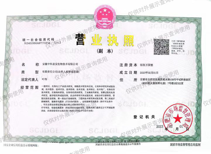 地址:安徽省合肥市高新区中试科技园区(省科院大健康孵化器) 营业执照